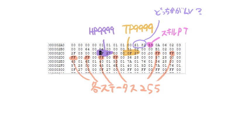 たまに変わらないことがあります。 現在分かっている箇所だけ書いておきます。 仲魔1体目 0x224〜0x22F 敵専用スキルへの変更も確認(ただし使用不可) 話は変わりますがここって質問すると消されるんですね。 これも消されそうですが [No.2960]