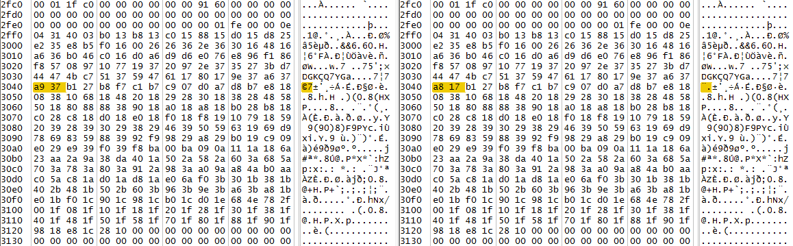 メタルマックス4 月光のディーヴァ (改造・解析) http://web.save-editor.com/bbs/patchcode/3ds/bbs.cgi?list=pickup&num=106#106 [No.3301] 経験値は普通にヒットしますが、アイテムに関しては少々面倒ですね。アイテム毎に数値が固定されているのか位置によって変動するのか判りませんが、 私の環境下での一例をば。 レベルメタフィン 所持数1→D816 99→DE36 スーパーレアメタル 所持数1→A817 99→AE37 宇宙電池L 所持数1→D017 99→D637 上記のように真ん中の二桁に00、80のいずれかを起点として、所持数を16進数に変換した数値を足す形式のようです。 私の場合は3040にスーパーレアメタルが存在し、 左側は19、右側は1ストックが存在する状態です。 チェックサムは先頭8バイトが非常に怪しいですね。 [No.3302] [No.3303] |