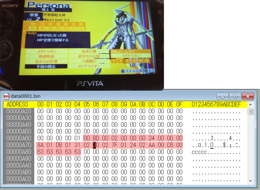 改造したPS Vitaが必要になるのかなどの詳細は不明ですが、セーブデータの改造が期待されます。 [No.1743] 簡単なサーチはできたので一応報告します。なお、質問などは基本受け付けません。 効果確認できたソフト ペルソナ4ゴールデン rinCheatでセーブデータを複合化、/ux0:/data/rinCheat/PCSG00563_SAVEDATAの中にあるdataxxxx.binをサーチ。 所持金をサーチ(所持金が確認できるまでプレイ、初期金額7000) なお、このソフトではリトルエンディアンなので注意。 (7000の場合、16進数で1B58→4byteなので00001B58。これが581B0000になります) 自分の場合、開いてすぐにありました。 (0x00000044部分) 変動タイプかは不明。 金額を9999999に。 リトルなので7F969800と入力。 本体に戻してプレイ。 以上となります。 一応報告としてここへ書き込みましたが、またほかに掲示板があればそちらへいきます。 [No.1756]